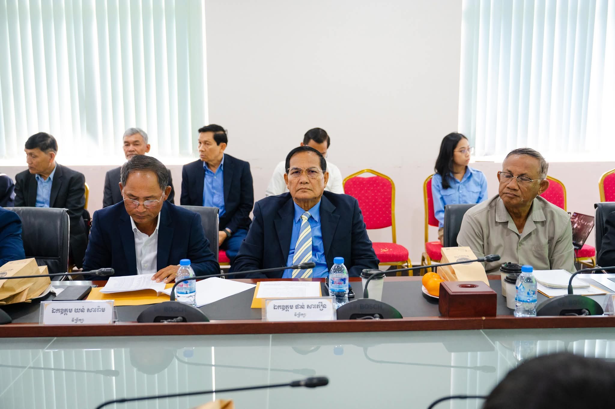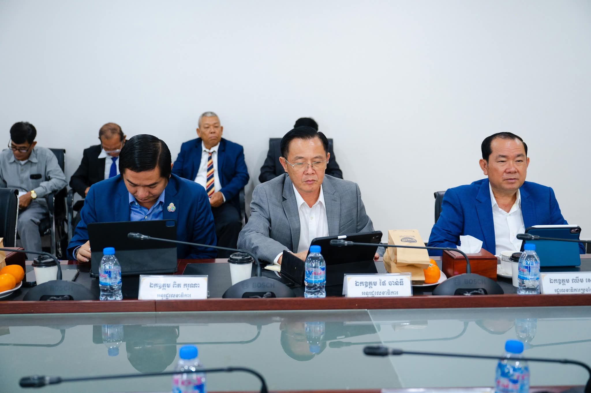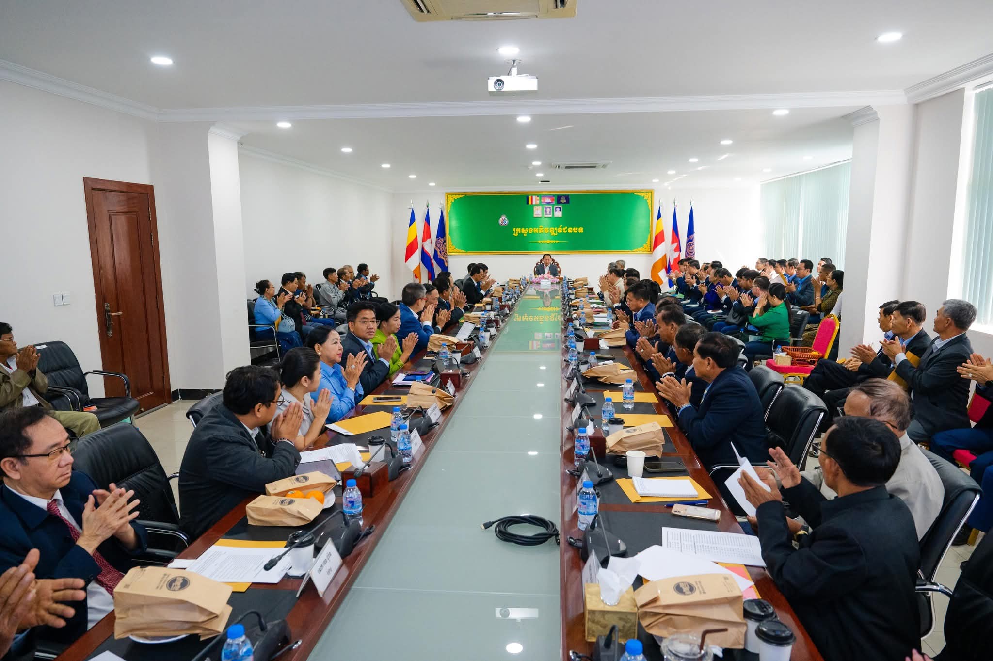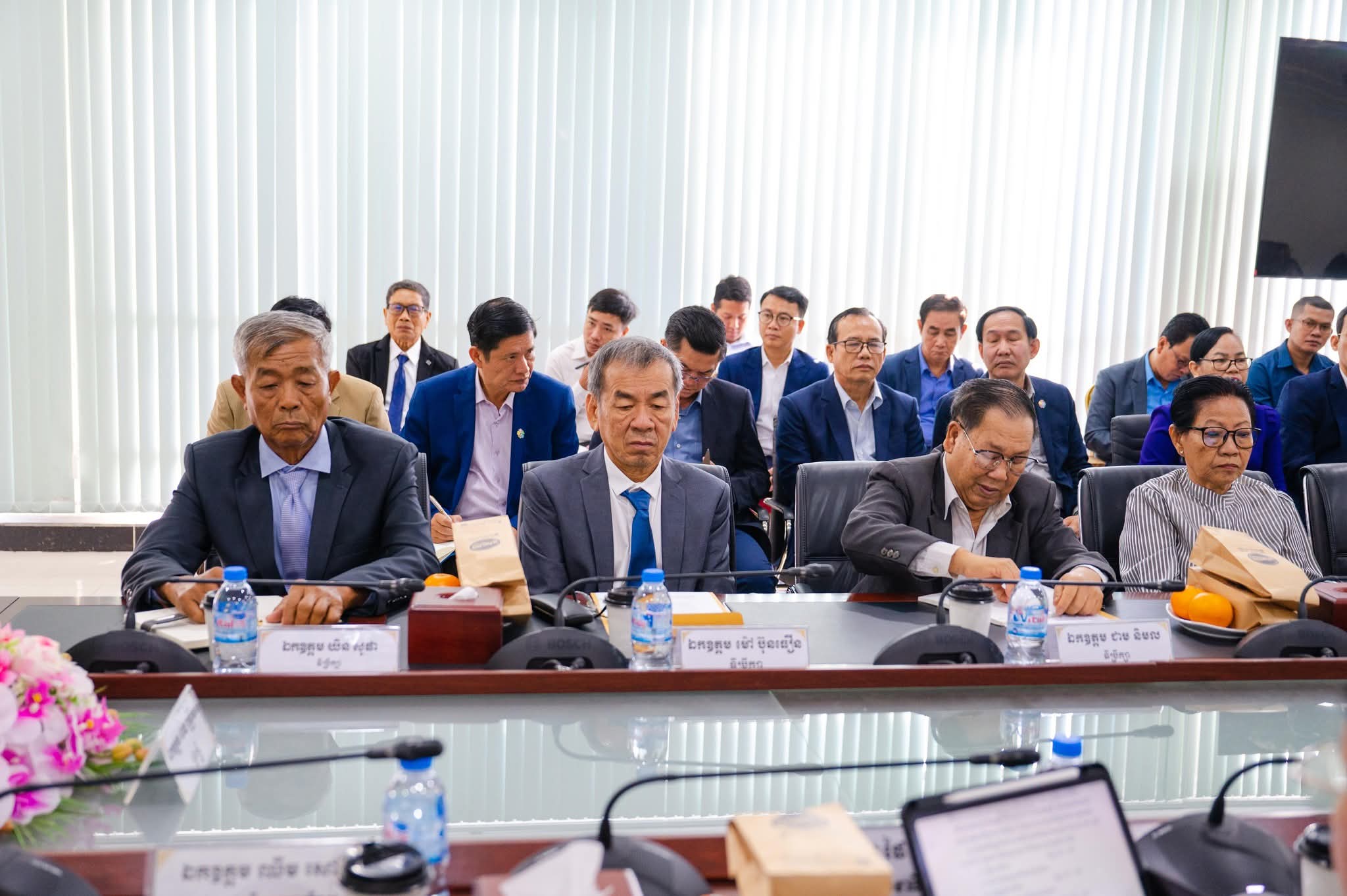 After the meeting, H.E. the Minister visited the workrooms of the advisors, Excellencies, Lok Chumteav, ladies and gentlemen, which have been equipped with adequate office equipment to facilitate comfortable and effective work.