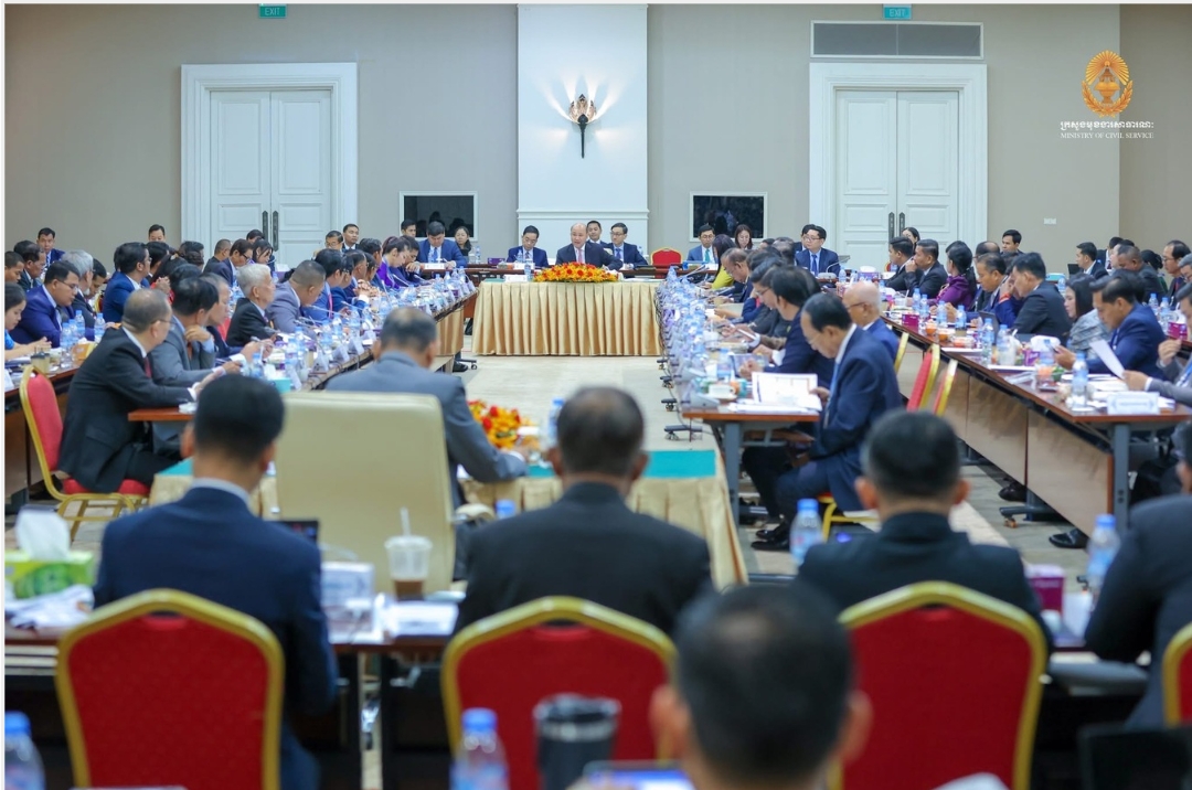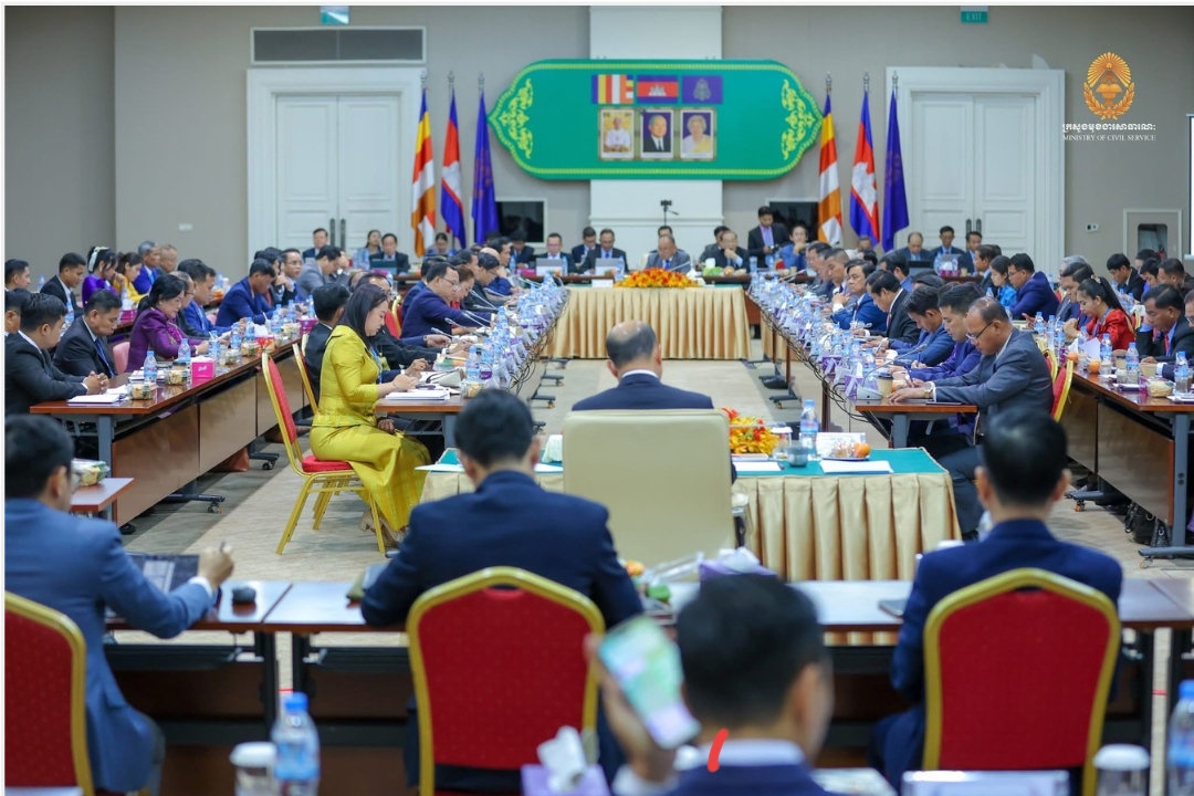 នាព្រឹកថ្ងៃទី១០ ខែមីនា ឆ្នាំ២០២៦ ឯកឧត្តម ហ៊ុន ម៉ានី ឧបនាយករដ្ឋមន្ត្រី រដ្ឋមន្ត្រីក្រសួងមុខងារសាធារណៈ ដឹកនាំប្រតិភូក្រសួងមុខងារសាធារណៈ ដើម្បីចែករំលែកវឌ្ឍនភាពការងារ និងព័ត៌មានចាំបាច់ផ្សេងៗអំពី «ការគ្រប់គ្រងវិស័យមុខងារសាធារណៈ» ជាពិសេសវឌ្ឍនភាព និងលទ្ធផល ដែលកំពុងសម្រេចបានជាជំហានៗ ក្នុងការកែទម្រង់រដ្ឋបាលសាធារណៈ ជូនក្រុមឧត្តមប្រឹក្សាពិគ្រោះ និងផ្តល់យោបល់ នៅវិមានសន្តិភាព។