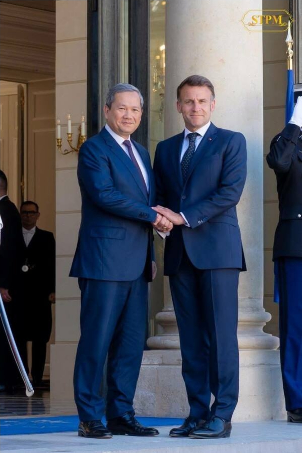 (ភ្នំពេញ)៖ សម្តេចមហាបវរធិបតី ហ៊ុន ម៉ាណែត នាយករដ្ឋមន្ត្រីនៃព្រះរាជាណាចក្រកម្ពុជា បានសម្តែងនូវការអរគុណយ៉ាងជ្រាលជ្រៅចំពោះ ឯកឧត្តម Emmanuel Macron ប្រធានាធិបតីនៃសាធារណរដ្ឋបារាំង សម្រាប់កិច្ចបដិសណ្ឋារកិច្ចយ៉ាងកក់ក្តៅ និងលទ្ធផលដ៏ផ្លែផ្កានៃកិច្ចពិភាក្សាការងារ ក្នុងគោលដៅពង្រឹង និងពង្រីកចំណងមិត្តភាពទ្វេភាគីរវាងប្រទេសទាំងពីរឱ្យកាន់តែរឹងមាំបន្ថែមទៀត។