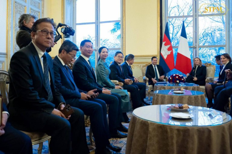 នារសៀលថ្ងៃទី១៨ ខែមករា ឆ្នាំ២០២៤ សម្តេចមហាបវរធិបតី ហ៊ុន ម៉ាណែត នាយករដ្ឋមន្ត្រី នៃព្រះរាជាណាចក្រកម្ពុជា បានអញ្ជើញជួបសម្តែងការគួរសម និងពិភាក្សាការងារ ជាមួយនឹងលោកជំទាវ Yaël BRAUN-PIVET ប្រធានរដ្ឋសភាបារាំង ក្នុងឱកាសនៃដំណើរទស្សនកិច្ចផ្លូវការនៅទីក្រុងប៉ារីស សាធារណរដ្ឋបារាំង ។